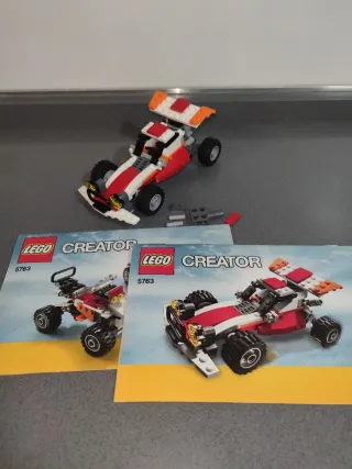 Set de construcción Lego Creator 5763. - Incluye instrucciones de montaje. - El set permite construir un buggy y otros dos modelos (no simultáneamente) - Piezas de plástico de colores rojo, blanco y naranja. - Incluye los dos libros de instrucciones