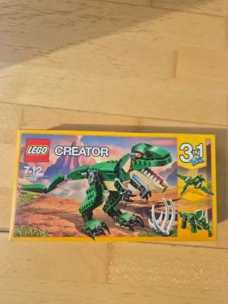 Set de construcción LEGO Creator 3 en 1. Está abierto pero está nuevo - Modelo de dinosaurio verde. - Incluye piezas para construir 3 modelos diferentes. - Edad recomendada: 7-12 años.