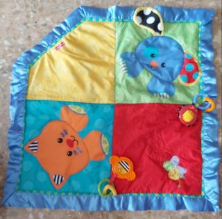 Robot musical con luces, sonido y movimiento Fisher-Price. Regalo alfombra de juegos para bebé, tambien Fisher Price Las medidas son: Robot: 30cm de altura con las orejas Alfombra: 78x78cm