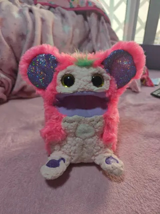 Peluche interactivo Rizmo en color rosa, con detalles brillantes. - Orejas grandes con acabado brillante. - Detalle de mechón verde en la cabeza. - Patas con diseño de nota musical.