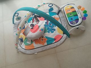 Gimnasio musical Fisher-Price para bebés, en buenas condiciones. - Alfombra acolchada con diseños de animales. - Arco con juguetes colgantes. - Piano musical integrado.