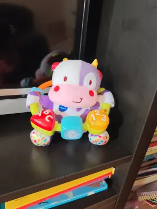 Juguete musical en forma de vaca de la marca Vtech. - Diseño colorido con detalles de vaca. - Incluye elementos interactivos como botones y texturas.