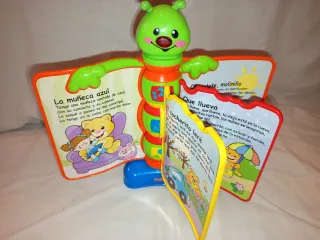 Juguete interactivo de Fisher-Price con forma de gusano. - Incluye un libro con Cuentos Musicales. - Diseñado para el aprendizaje temprano. - Colores vivos y atractivos. - Incluyo volante interactivo