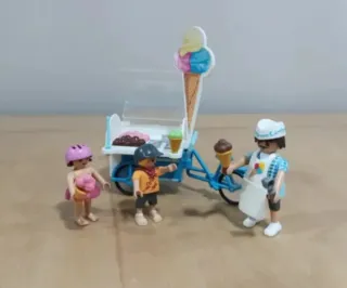 Set de Playmobil que incluye un carrito de helados y tres figuras. - Carrito de helados con detalles. - Figura de vendedor de helados. - Dos figuras de niños. Opción de agrupar anuncios y de realizar envíos ordinarios por Correos