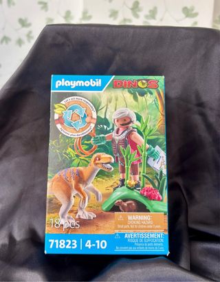 Set de Playmobil de la línea Dinos, modelo 71823. Incluye 18 piezas. - Recomendado para edades de 4 a 10 años. - Advertencia: Riesgo de asfixia por piezas pequeñas. No apto para niños menores de 3 años.