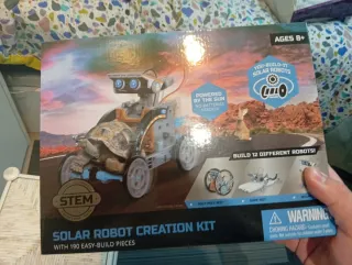 Kit de creación de robots solares para construir 12 modelos diferentes. Fomenta el aprendizaje STEM. - Incluye 190 piezas fáciles de montar. - Funciona con energía solar, no necesita baterías. - Recomendado para mayores de 8 años.