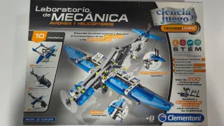 Kit de construcción Clementoni Laboratorio de Mecánica para crear aviones y helicópteros. Fomenta el aprendizaje de palancas y engranajes. Para niñ@s de + 8 años. - Incluye 10 modelos para ensamblar. - Más de 200 componentes intercambiables. - Desarrolla la destreza manual, la imaginación y la creatividad. - Edad recomendada: +8 años. - Fabricado en Europa. - Está como nuevo. Se abrió pero no se ha llegado a usar.