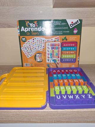 Juego educativo Yo Aprendo a Leer de la marca Diset. Ideal para iniciarse en la lectura. - Estuche de plástico morado con asa naranja. - Diseño con puntos en relieve. - Incluye etiqueta con el logo Yo Aprendo a Leer y Diset.En principio sin caja, la guardé a parte por falta de espacio y no la encuentro.