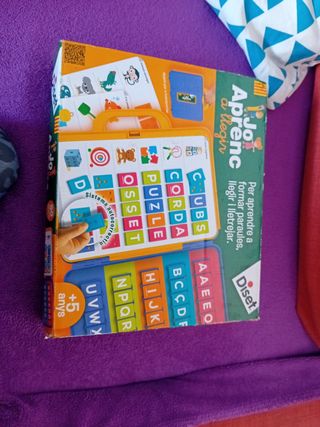 Juego educativo de letras y pensamiento para niños. - Fomenta el aprendizaje del español. - Incluye tarjetas con letras y palabras. - Ideal para ejercitar la memoria y la ortografía. La caja está tocada pero el juego en si está nuevo. Tanto las cartulinas como las letras, están en perfecto estado. Ideal para que los niños hasta 5 años aprendan a escribir y leer. Precio nuevo, 12€. Lo vendo por 7€ y regalo el juego de la última foto. Le faltan algunos aros. Entrega en Poblenou, Barcelona.