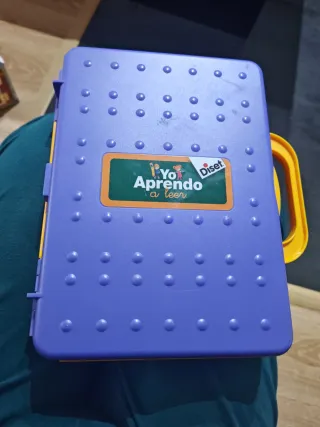 Maletín de aprendizaje Yo aprendo a leer de la marca Diset. Ideal para iniciarse en la lectura. - Maletín de plástico morado. - Asa de transporte naranja. - Diseño con puntos en relieve en la tapa. Está nuevo no lo ha usado.