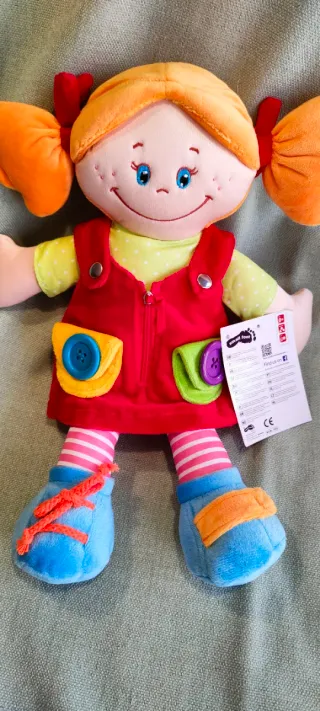 Muñeca de trapo diseñada para la estimulacion psicomotriz. Ideal para que los peques 👧🏽👶🏽🧒🏻 aprendan a vestirse, estimular su autonomía personal... Para personas con necesidades especiales, estimular su motricidad fina... Muy blandita y suave 🥰 Mide 39 cm Tengo también el chico ! Mucho más en el perfil 🌻