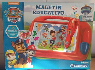 Maletín educativo de La Patrulla Canina (Paw Patrol) para niños de 4 a 6 años. Incluye 18 actividades para aprender colores, formas y números. - Incluye bolígrafo electrónico y soporte para fichas. - Diseño de La Patrulla Canina. - Marca Clementoni. Todo lo que se ve en las fotos.