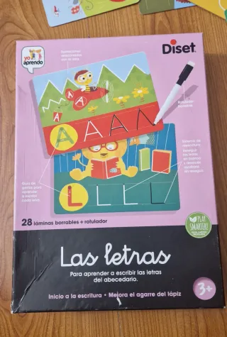 Set de tarjetas educativas de la marca Diset para aprender las letras. - Diseños coloridos con animales y letras. - Incluye tarjetas con letras mayúsculas y minúsculas. - Ideal para el aprendizaje temprano.