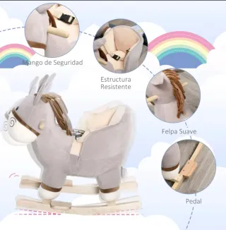 Caballito Balancín Infantil en Forma de Burro de Peluche para Bebés 18-36 Meses. Con Sonido Cinturón de seguridad Dimensiones 61x34x58 cm Gris