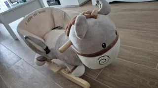 Adorable caballito balancín con forma de león para los más pequeños. Suave y acogedor. Recomendado para niños a partir de 18 meses y con peso inferior a 40 kg. Especificaciones: Color: marrón Material: felpa (100% poliéster), madera de álamo y metal Medidas totales: 68x35x50 cm (LxANxAL) Altura del asiento al suelo: 31 cm Edad recomendada: 18-36 meses Carga máxima: 40 kg Certificaciones: EN71-1.2.3 y EN62115 Referencia: 330-115 El paquete incluye: ● 1 x Balancín ● 3 x Pila LR44 ● 1 x Manual de instrucciones Sin usar, con caja. Viene con defecto de fabricación. Precio original en Maison du monde: 63,99.