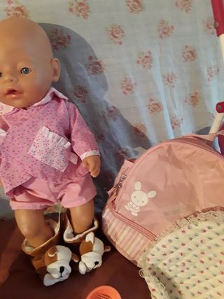 muñeco años 70 toys made spain mocosete más silla paseo y accesorios playa más mochila biberón .saco todo 39 euros, silla paseo 2 euros