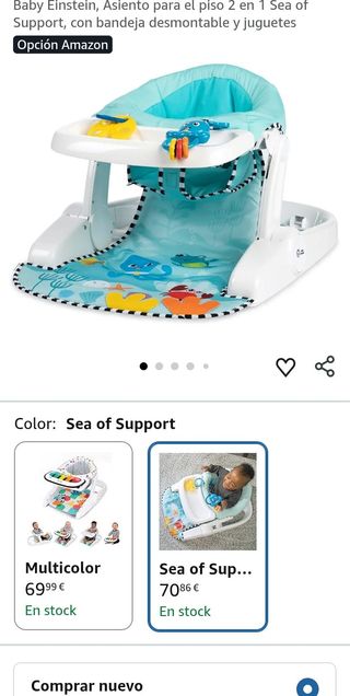 MarcaBaby Einstein ColorSea of Support MaterialPlástico Dimensiones del producto48,3f. x 71,1an. x 35,6al. centímetros Peso del producto1,63 Kilogramos Rango de edad (descripción)Bebé Ajuste de altura 2 en 1 para ayudar a los bebs grandes y pequeos a sentarse por s mismos a medida que crecen, a partir de los 4 meses Suave cojn de asiento para la comodidad del beb durante la hora de la colacin o para el tiempo de juego sentado 2 juguetes que se unen y se separan para captar la atencin del beb con elementos de estimulacin sensorial y colores brillantes El asiento se pliega para viajar o guardarlo. El cojin del asiento es lavable a ...