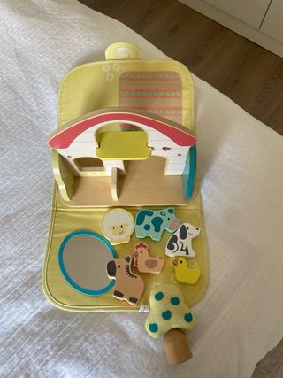 Granja de juguete para bebés. Los animalitos son de madera y se queda todo guardado como en una maleta. Ideal a partir de 12 meses hasta 2-3 años.