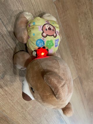 Peluche interactivo de VTech Baby con diseño de oso para aprender a gatear. - Divertido diseño con temática de aprendizaje. - Incluye elementos de juego como una mariquita y flores. - Tejido suave y agradable al tacto. Vendo oso de peluche VTech Baby 1-2-3 Sígueme en muy buen estado. Funciona perfectamente: camina, emite sonidos y luces educativas. Perfecto para bebés y peques a partir de ~6 meses. Incluye música y frases para estimular desarrollo motor y atención. Pilas no incluidas (o incluidas si quieres ofrecer ese extra). Limpio y cuidado, sin roturas ni manchas visibles. Estado Muy bueno / Usado pero funcionando