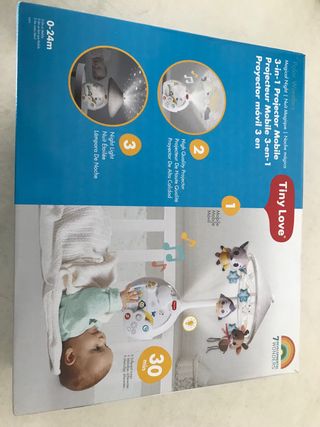 Tiny Love - Luz de Compañía Magical Night. De 0 a 24 meses. Para acoplar a la cuna con carrusel móvil cuando el bebé es recién nacido y lámpara de noche con luz y música a partir de los 5 meses. Proyecta imágenes. 3 en 1. Prácticamente nuevo, incluye instrucciones de uso.
