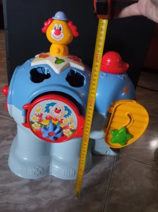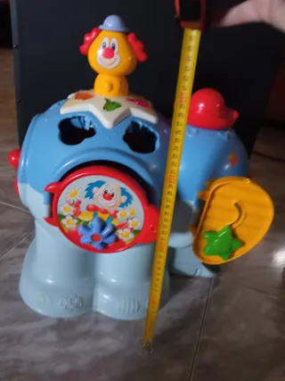 Lote de juguetes para bebé Ejercicios psicomotores. Un elefante azul de 48 cms de altura. Juguete de encaje con formas, lleva las 4 piezas de encaje. Figura de payaso en la parte superior, se puede desencajar y poner pilas para luces y sonidos . Mesa de actividades. Con pilas incluidas. Música , luces y Canciones. Sin patas, se puede poner sobre mesa o sofá. Avión grande, en el se pueden guardar juguetes pequeños. Rueda grqnde. Zona de encuentro Alhaurín de la Torre y Málaga Capital.