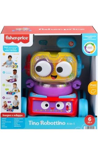 Tino Robottino de Fisher-Price, un juguete educativo para bebés. - Diseñado para el aprendizaje y desarrollo. - Incluye diferentes etapas de aprendizaje. - Edad recomendada: 6 meses en adelante.