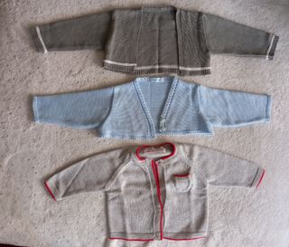 Lote de tres chaquetas de 1-3 meses en perfecto estado, una unica puesta. No hago envios, la entrega se haría en la zona de parque de Santa María. Línea 4 de metro. Seriedad!! CONTACTAR SOLO REALMENTE INTERESADOS. EL PRECIO ES EL QUE MARCA EN EL ANUNCIO, NO CONTACTAR PARA OFRECER MENOS, BORRO DIRECTAMENTE EL MENSAJE. Más cositas en mi perfil, ropa, complementos, cine y libros, juguetes para niños y bebés.