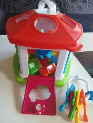 Juguete educativo de encajables que ayuda al bebé a desarrollar habilidades cognitivas y la coordinación mano-ojo. - Incluye 5 formas de animales, 5 formas geométricas y 5 llaves de colores. - Con 2 modos de juego: encontrar la llave correcta para abrir las puertas o encajar las figuras en el techo. - Diseño colorido y atractivo. - De 1 a 4 años de edad.