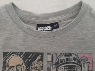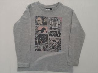 Camiseta gris de niño de Star Wars. Talla 4/5. En muy buen estado. cuello muy bueno, no se desboca. Ver fotos de cerca para comprobar estado. No bizum. Más ropa, juguetes , Playmobil, Legos, y accesorios bebé en mi perfil.