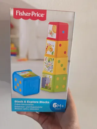 Set de bloques de construcción de Fisher-Price, diseñados para el desarrollo temprano. - Incluye varios bloques con diferentes diseños y colores. - Aptos para bebés a partir de 6 meses.