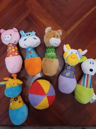 Set de bolos de peluche con diseño de animales para bebés. Incluye 7 piezas. - Diseño de animales. - Incluye una bola. - Apto para mayores de 6 meses.