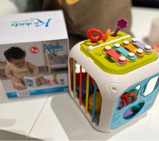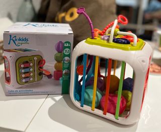 Cubo de actividades Kiokids con múltiples juegos para bebés a partir de 12 meses. - Incluye 7 actividades diferentes. - Diseñado para estimular el desarrollo. - Colores vivos y formas variadas.