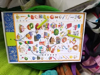 Kit Lovevery Inspector para bebés de 7 a 8 meses. El paquete está completo con todos los artículos originales, usados muy poco. Incluye varios elementos para el desarrollo. - Caja de clasificación de colores. - Pelotas de madera. - Libro Mis primeros signos. - Tarjetas - Bloques de madera. - Aro de apilamiento.