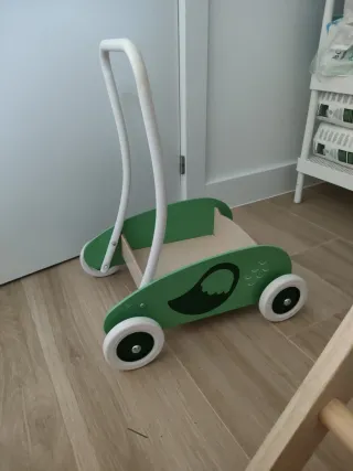 Carrito de madera para bebé, ikea uppsta, ideal para dar los primeros pasos. Su diseño es divertido y funcional. Puede ponerse diferentes juguetes para transportar . Alguna marca de uso , pero buen estado general