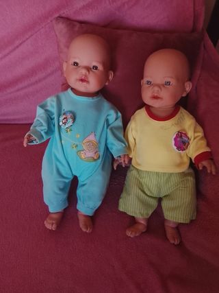 Se vende lote de dos muñecos bebé. - gemelos. - Muñeco con pijama azul. - Muñeco con camiseta amarilla y pantalón verde.