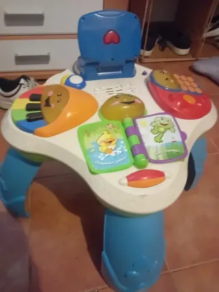 Mesa de actividades para bebés con múltiples juegos. - Piano con teclas de colores. - Elementos giratorios y deslizantes. - Diseños coloridos y divertidos.
