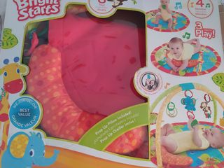 Alfombra de actividades para bebés Bright Starts, en perfecto estado. Incluye una almohada de apoyo. - Alfombra acolchada y cómoda. - Arco con juguetes colgante - Almohada de apoyo incluida.