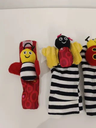 Set de muñequeras y calcetines para bebé con divertidos diseños de insectos y lunares. - Incluye 4 piezas. - Diseños variados: mariquitas y abejas. - Material suave y cómodo para la piel del bebé.