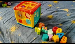Divertido cubo de actividades para el desarrollo de los más pequeños. Presenta diferentes formas y colores para encajar. - Incluye piezas de formas geométricas. - Diseñado con colores vivos y alegres. - Cuenta con un reloj y engranajes. - Tiene sonidos y un pequeño pianito por un lado del cubo.