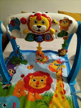 Preciosa alfombra gimnasio para bebés de la marca Tiny Love, en muy buen estado. Es perfecta para el desarrollo sensorial y motor del bebé. - Incluye gimnasio con arcos y colgantes. - Alfombra acolchada y suave. - Diseño con animales adorables.