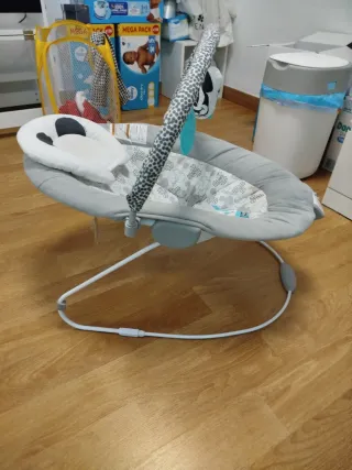 Hamaca mecedora para bebés con múltiples opciones de balanceo. - 3 posiciones de balanceo ajustables. - Diseño cómodo y acolchado. - Barra de juegos con juguetes colgantes - Música relajante.
