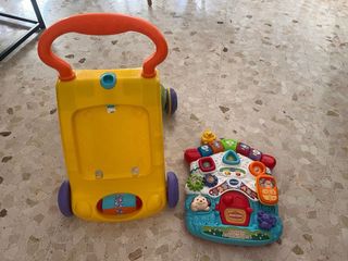 Andador interactivo de la marca Vtech para bebés. Diseñado para acompañar el aprendizaje y el juego. - Incluye un panel de actividades con números, letras y sonidos. - Cuenta con un teléfono de juguete extraíble. - Ruedas para facilitar el desplazamiento.