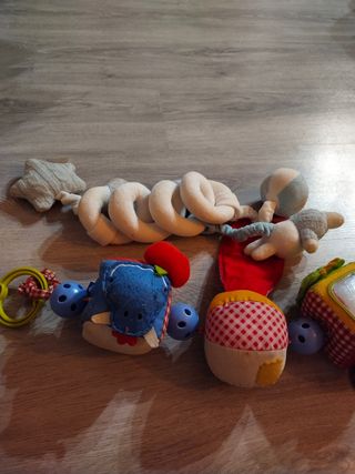Juguetes para silla paseo bebe, sonajero y varios libros sensoriales