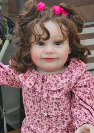 Muñeca realista de bebé, con un aspecto muy tierno y detallado. - Incluye un osito de peluche. - Viene con un biberón y un chupete. - Lleva un bonito conjunto de ropa y diadema.