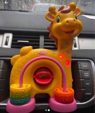 Jirafa de juguete Playskool, ideal para los más pequeños. Un divertido centro de actividades con colores vibrantes. - Diseño de jirafa. - Centro de actividades con aros apilables. - Marca: Playskool.
