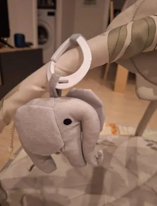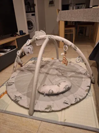 Gimnasio de actividades para bebés con diseño de hojas y animales. - Incluye arco de juegos. - Colgantes de elefante y jirafa. - Cojín de soporte. - Alfombra acolchada. Casi no se ha usado, se vende por mudanza.