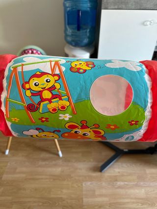 Rodillo de gateo de la marca Playgro, con un diseño divertido y colorido. - Ilustraciones de animales y naturaleza. - Ventana transparente para ver al bebé. - Materiales suaves y seguros.