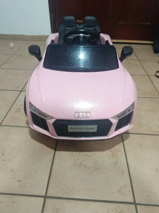 Coche eléctrico infantil con diseño deportivo. Con mando para controlarlo Puerto USB para conectar pendrive y poner música Radio - Color rosa. - Dos asientos. - Volante. - Ruedas. - Espejos laterales.