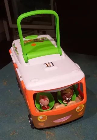 Autocaravana de juguete con figuras de animales. - Diseño colorido y divertido. - Figuras de ositos en el interior. - Con una práctica asa para transportarla. - Conserva todos los accesorios.
