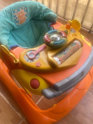 Andador de actividades para bebés, con asiento acolchado y varios juguetes interactivos. - Diseño colorido y atractivo. - Ruedas giratorias para facilitar el movimiento.